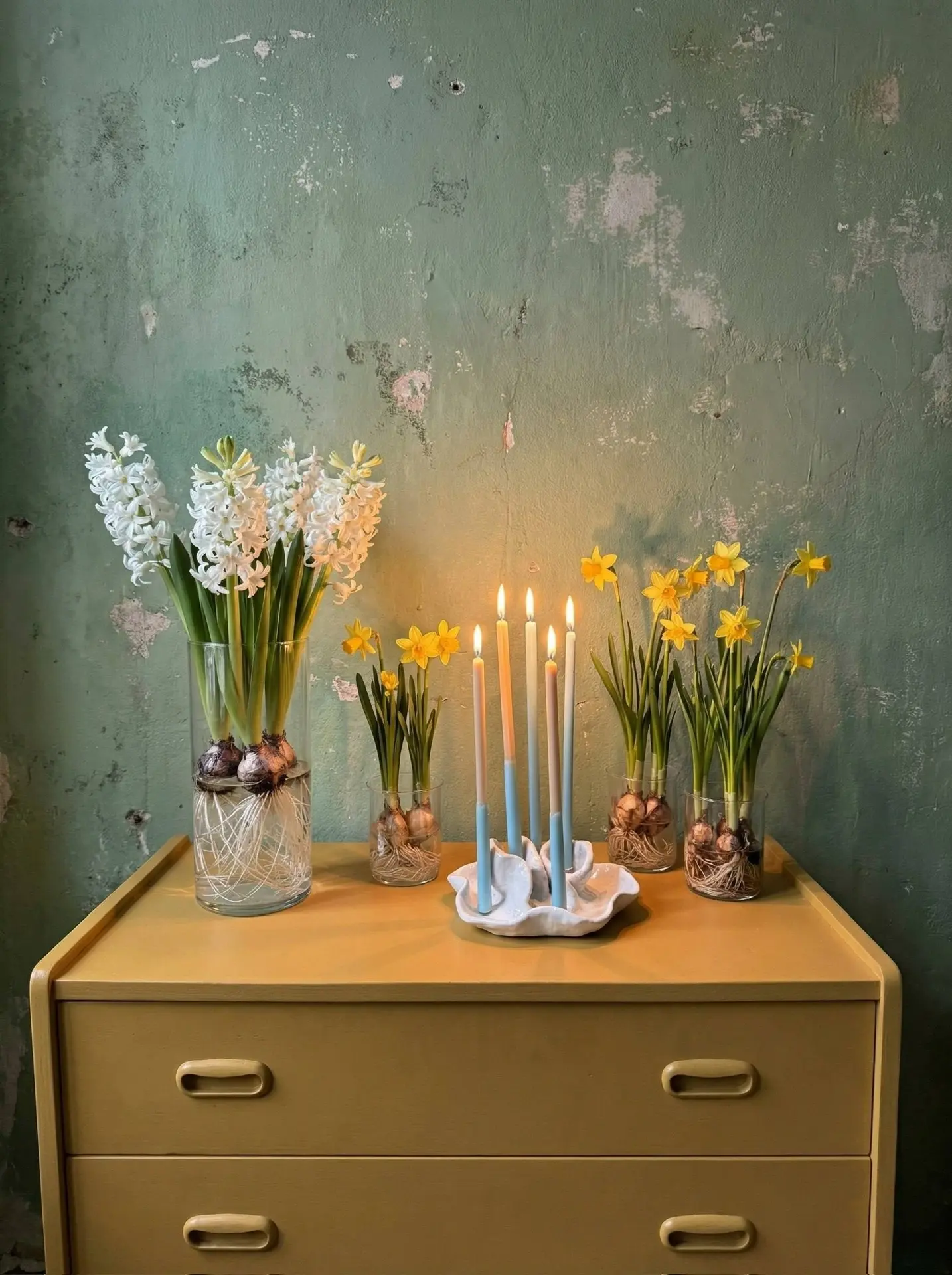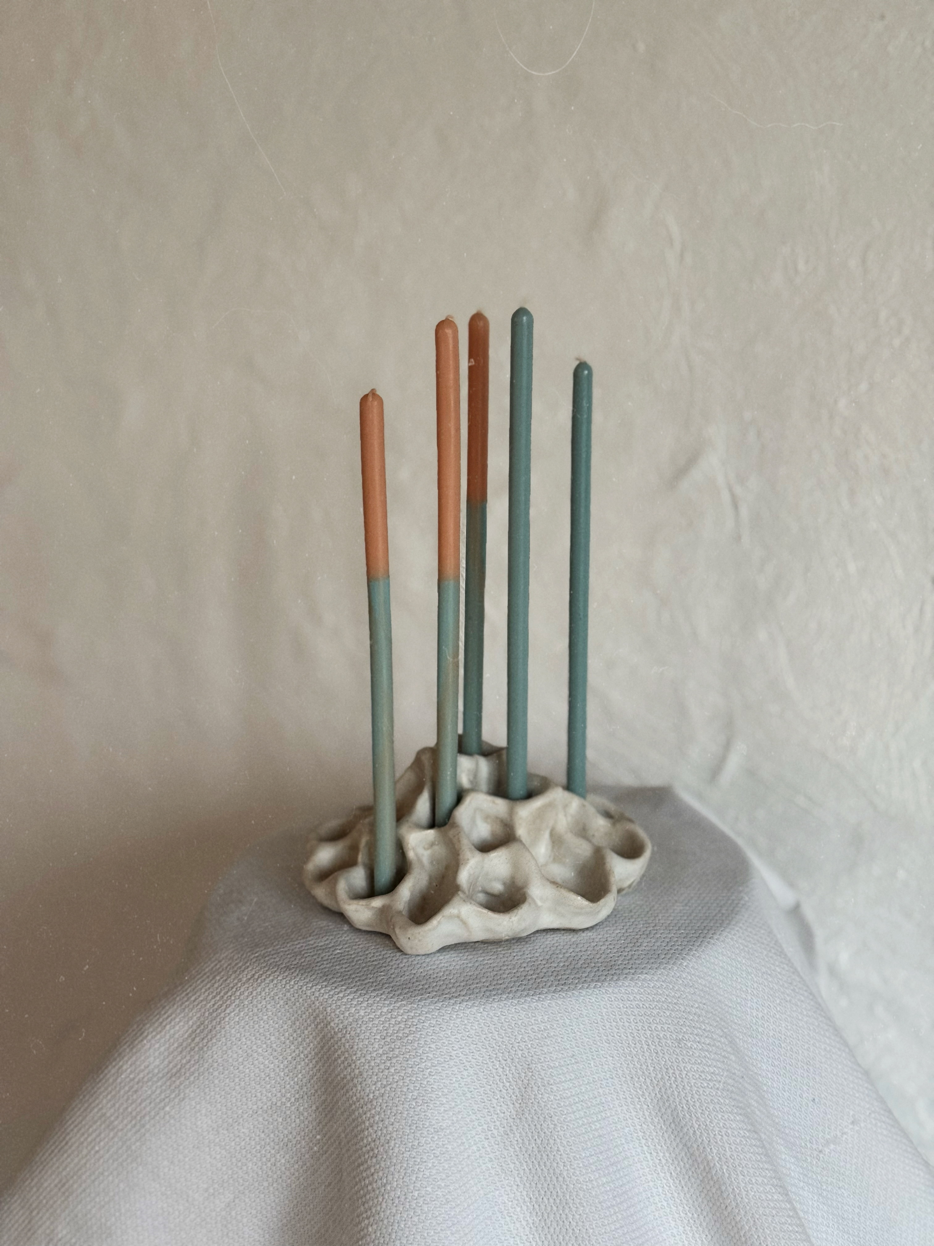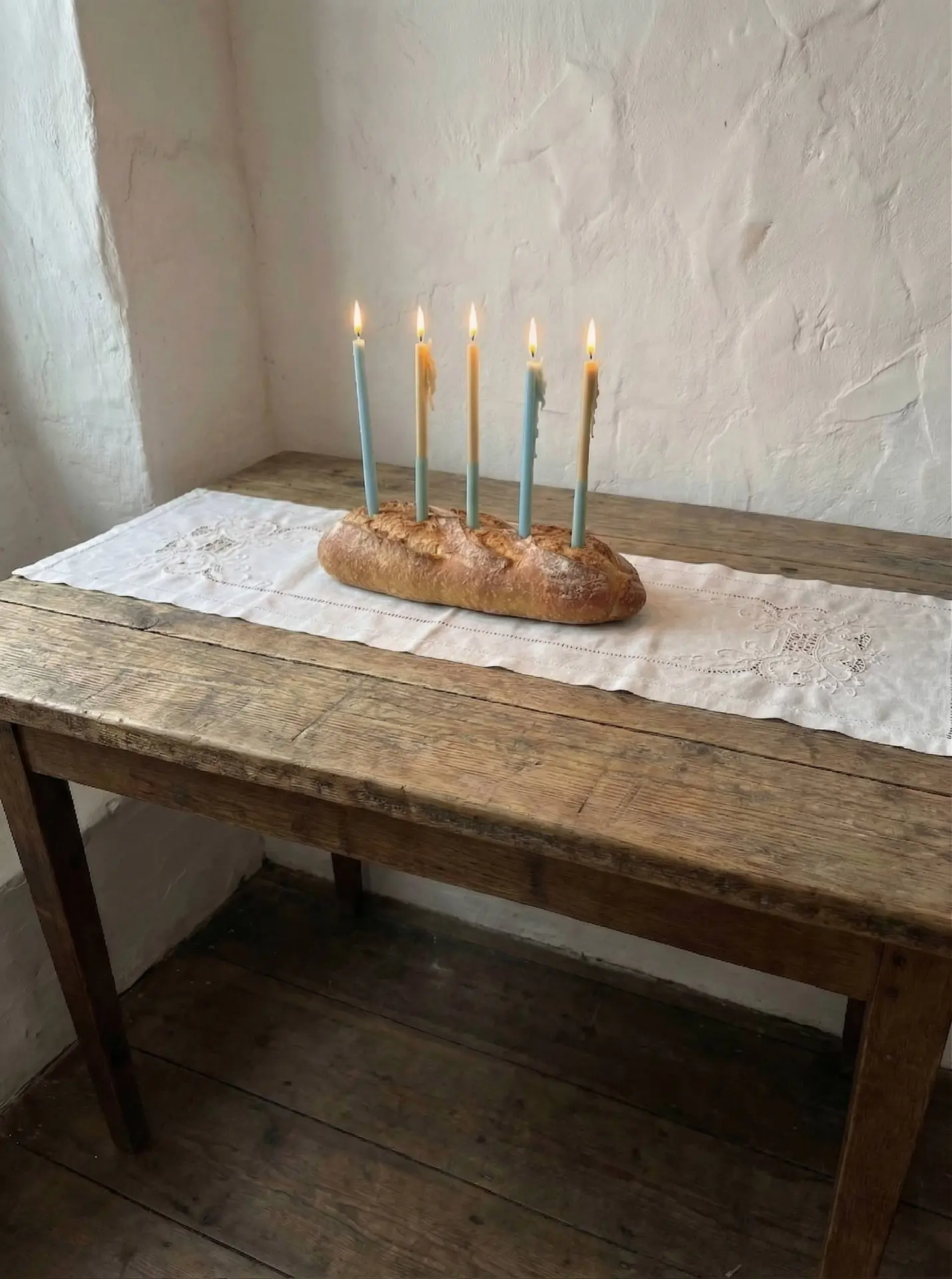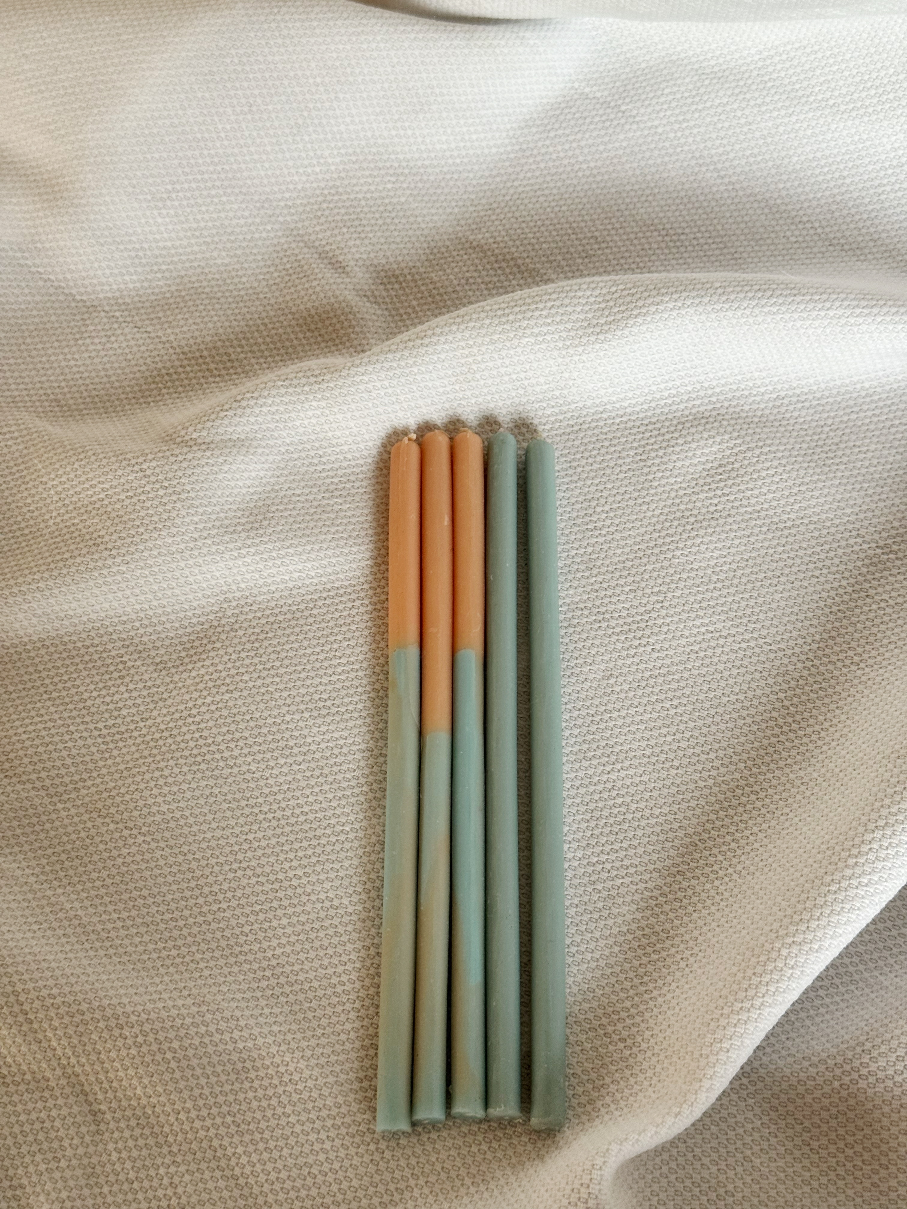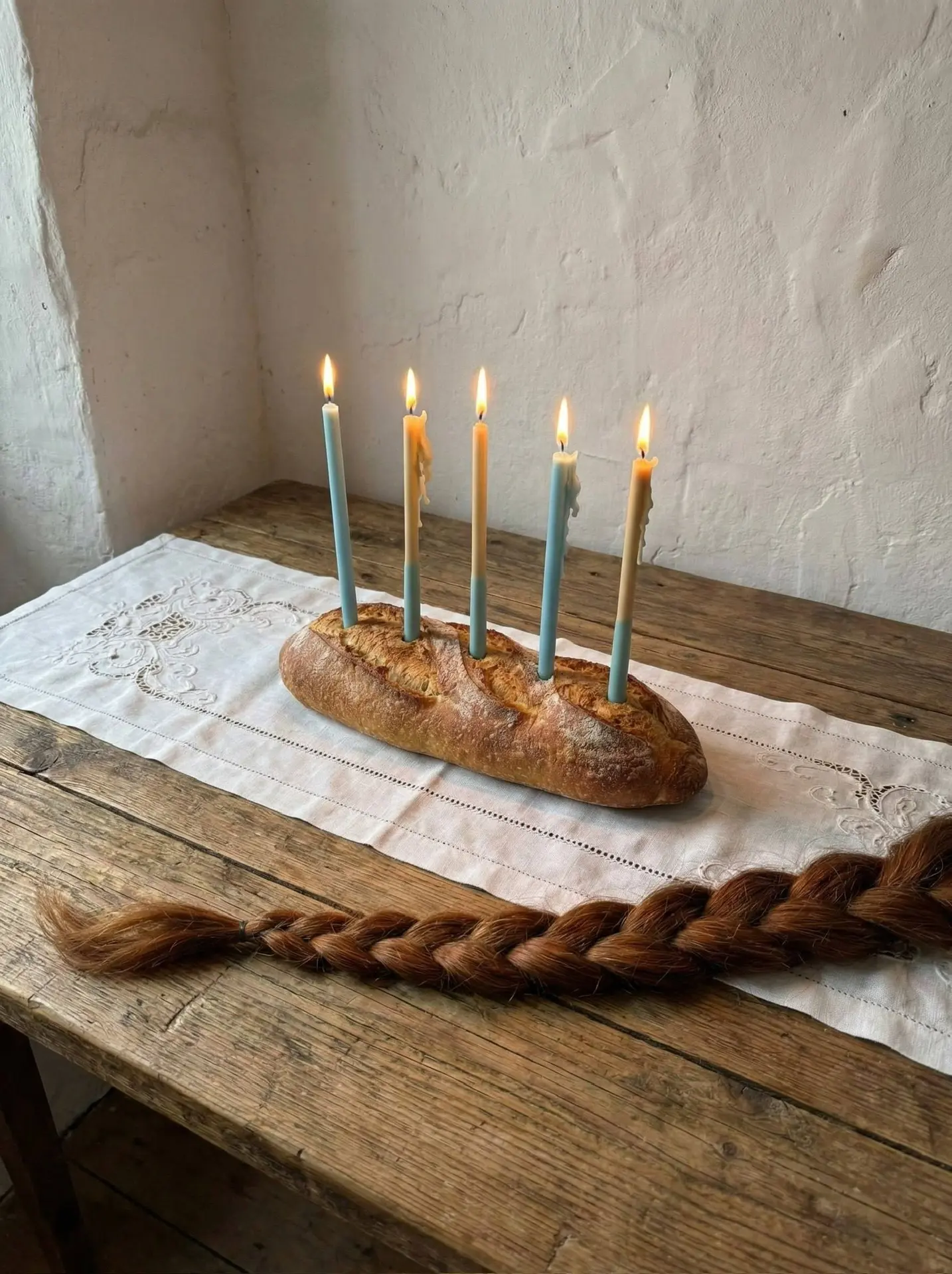 Набор изящных свечей, состоящий из двух моносвечей и трёх двухцветных свечей. Свечи предназначены для сервировки стола, создания уюта и тёплой атмосферы. Загаданные желания при задувании этих свечей сбываются. Время горения ~ 1 час