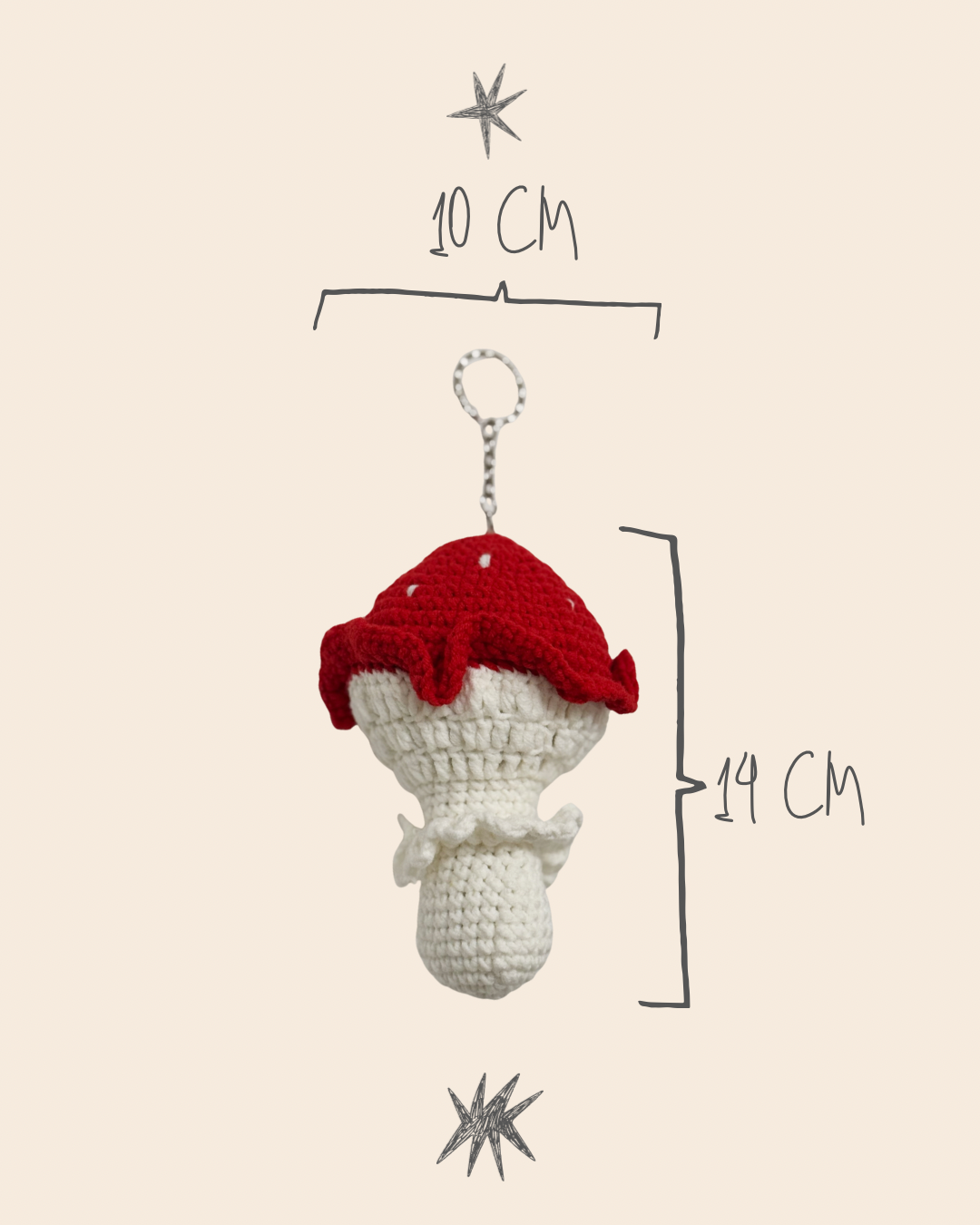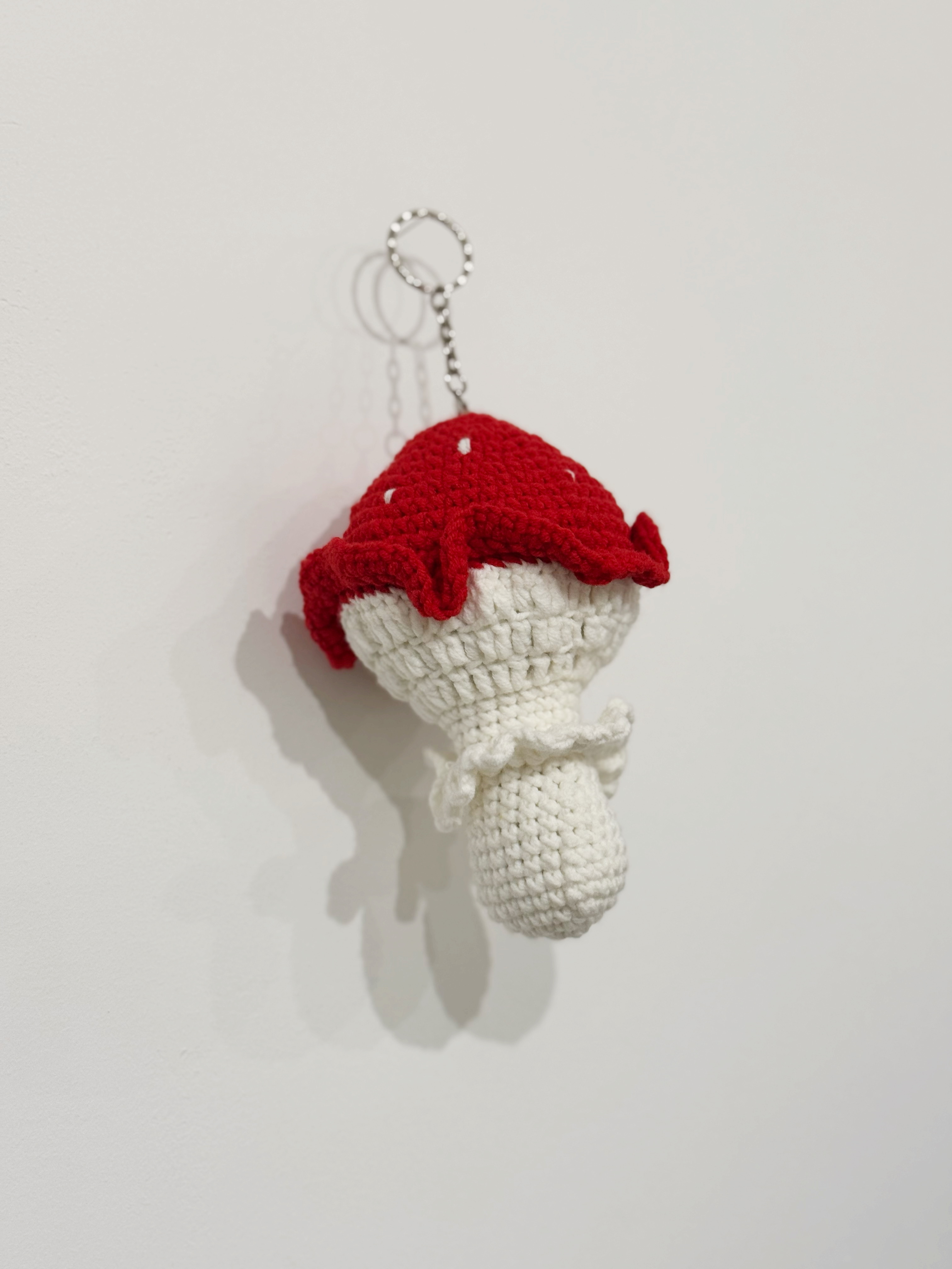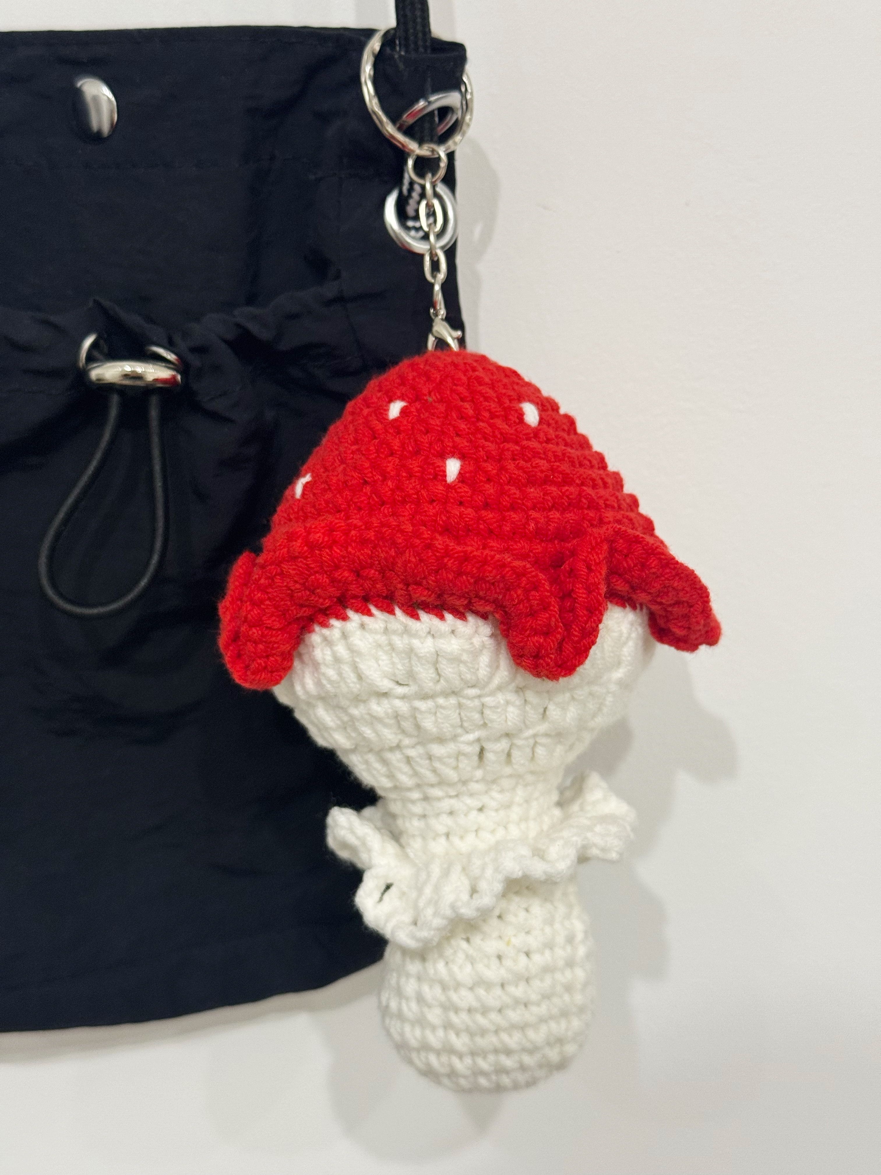 Устали от скучных аксессуаров? Хотите добавить в свой образ немного игривости и оригинальности? Тогда этот большой вязаный брелок в виде мухомора — то, что вам нужно!